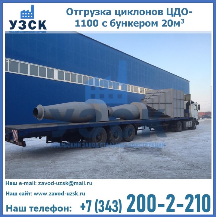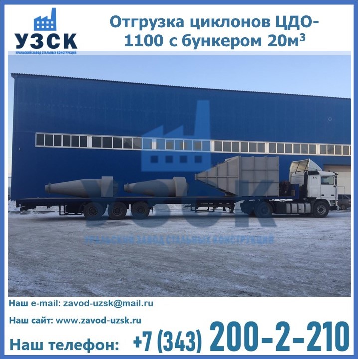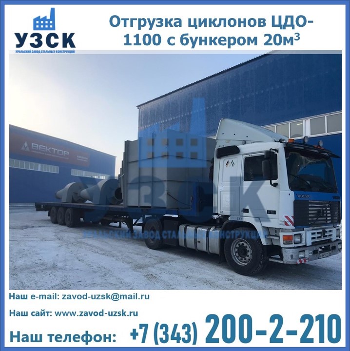 Циклоны ЦДО-1100 с бункером на 20 кубов были отгружены в декабре 2018 года в г. Новосибирск Каменск - Уральский.