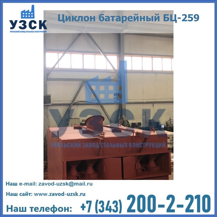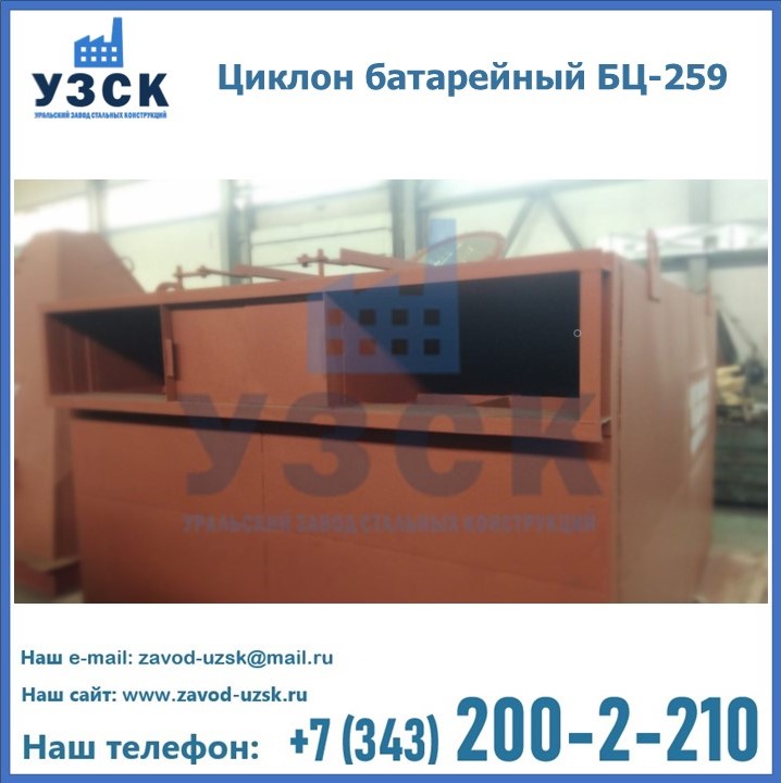 Приобрести качественное оборудование, в том числе, циклоны БЦ-259, можно в компании УЗСК в Каменске-Уральском. Мы предлагаем долговечную и надежную продукцию по приемлемой цене. Заказать и купить циклоны или другие изделия высокого качества можно через сайт Уральского Завода Стальных Конструкций, или позвонив по указанному в разделе «Контакты» телефону.