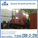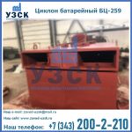 Батарейные циклоны модели БЦ-259 конструируются из нескольких металлических труб (выхлопных отводов), диаметр которых составляет около 26, 9 см. Элементы устанавливаются в параллельной плоскости и объединены корпусом с общей подводкой. Такие трубы предназначены для выхлопа и состоят из специальных заворачивающих лопаток, решетчатых элементов и опорных стоек футляра. Основную наружную панель оснащают патрубком для соединения и вибробункером, помимо этого, на панели устанавливают теплоизоляцию.