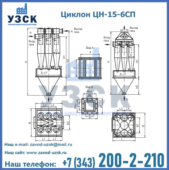Завод «УЗСК» в Каменске-Уральском предлагает большой выбор циклонов ЦН-15-900×6СП и прочих устройств, полностью укомплектованных и готовых к эксплуатации. Мы гарантируем соответствие оборудования всем требованиям ГОСТ и ТУ, износостойкость и высокую производительность предлагаемого оборудования. Уральский Завод Стальных Конструкций изготавливает и продает надежное, эффективное и производительное оборудование, имеющее длительную гарантию и большой эксплуатационный ресурс. Если требуется изготовить циклон нестандартных размеров, то такой вариант выполнения заказа тоже предусмотрен, так как предприятие имеет собственные производственные площади и надежных поставщиков. На все поставляемое или производимое оборудование имеются чертежи и прочая техническая документация. Заказать и купить циклоны или прочее оборудование высокого качества и по доступной цене можно через наш сайт или по указанному в разделе «Контакты» телефону.