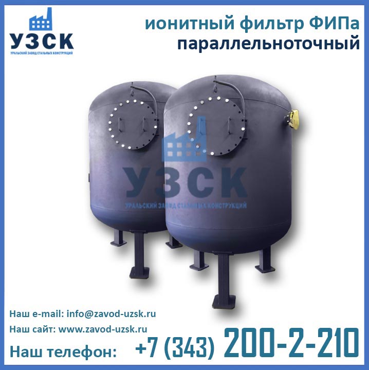 Уральский Завод Стальных Конструкций осуществляет производство ионитных фильтров ФИПа любых конструкция и типоразмеров в соответствии с нормами и требованиями ГОСТ. Возможно также изготовление нестандартных фильтров ФИПа по чертежам заказчика. Завод УЗСК имеет в своем распоряжении собственный аттестованный гидростенд и производит обязательные гидрологические испытания готового оборудования. Испытания фильтров ФИПа I 2,6-0,6 производятся пробным давлением 0,9 МПа (9 кгс/см2).